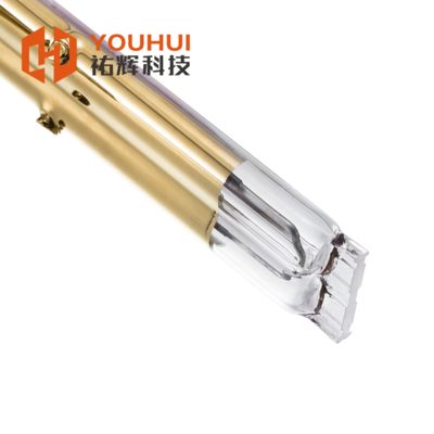 Our emitters feature optional gold or ceramic reflector coatings that concentrate heat for maximum efficiency. These coatings convert nearly all electrical power into usable heat. For high-watt applications exceeding 800°C, we recommend ceramic coating due to its superior temperature resistance up to 1000°C. Custom coating degrees are available beyond standard 180° (half-tube) coverage.